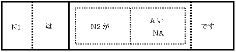 : N1はN2がAい/NAです