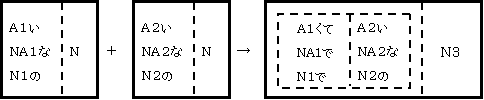 例:大きいかばん+黒いかばん→大きくて黒いかばん